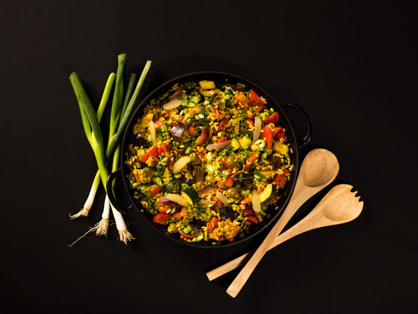 This vegan version of authentic Spanish paella is loaded with delicious vegetables. It’s the perfect choice for a light and colorful dinner.
