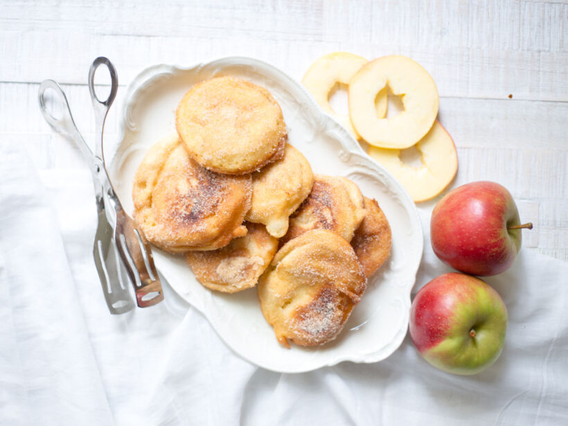 Pair this delectable dish with a cold Kristallweizen, a filtered wheat beer that offers a body viscous enough to complement the richness of the fritters, yet crisp and refreshing enough to gently cleanse the palate.